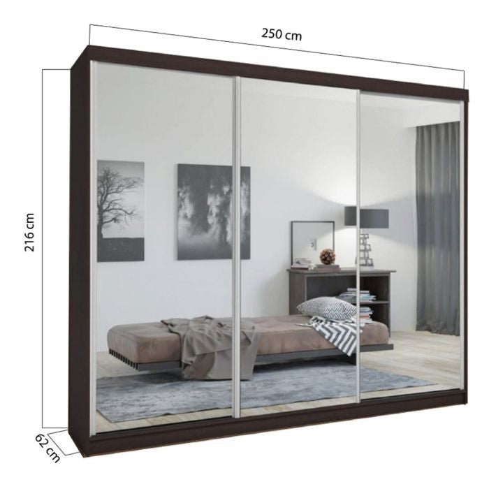 Each sliding door features a full-height mirror, offering a practical dressing solution while enhancing spatial depth. The smooth-glide track system ensures quiet, controlled movement across the full 250cm width.