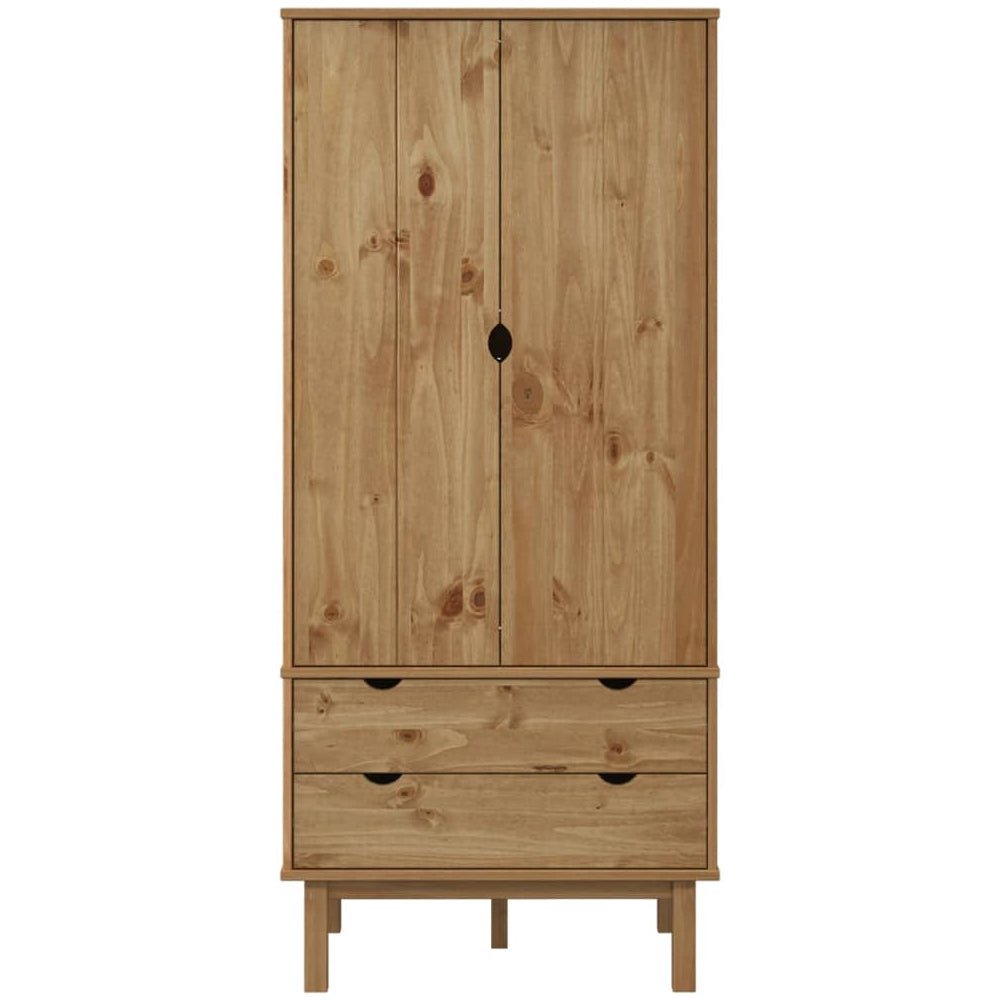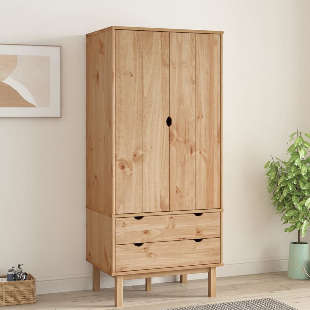 A: The wardrobe is made from solid pinewood with engineered panels for enhanced strength and a rustic look.