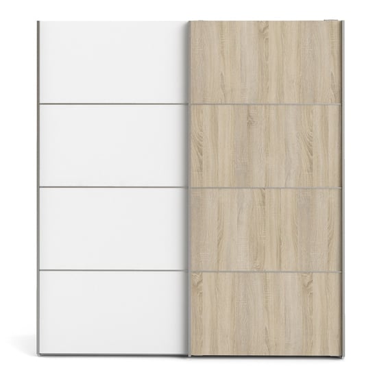 CHOICEWARDROBE Dcap 180cm White & Oak Wooden Sliding Door Wardrobe | Modern Two-Tone Bedroom Wardrobe with Shelves & Hanging Rails