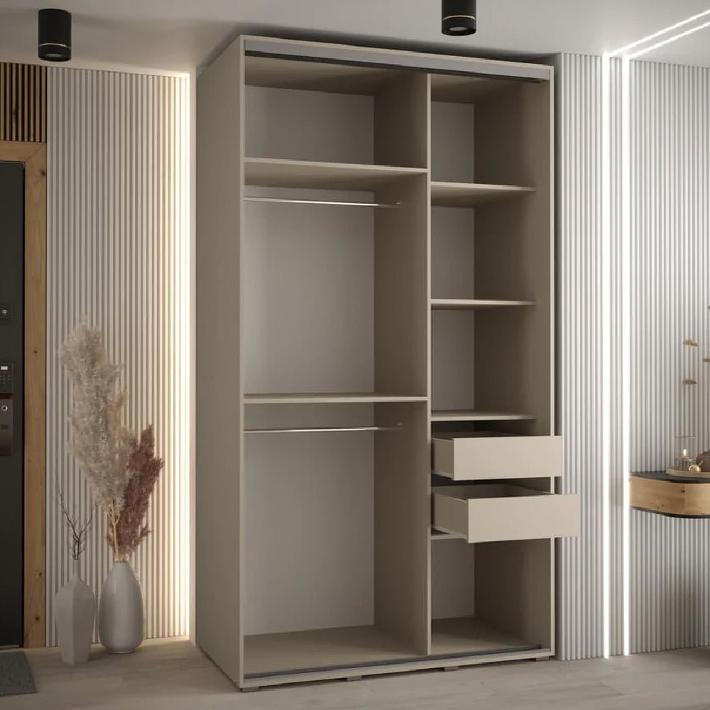 Refined, architectural, and intelligently proportioned, the CHOICEWARDROBE Delta Mirrored Sliding Wardrobe in Cashmere is designed for modern bedrooms where space, light, and order matter. The soft cashmere finish introduces warmth and calm, while the mirrored sliding door enhances natural light and creates a greater sense of depth within the room.
