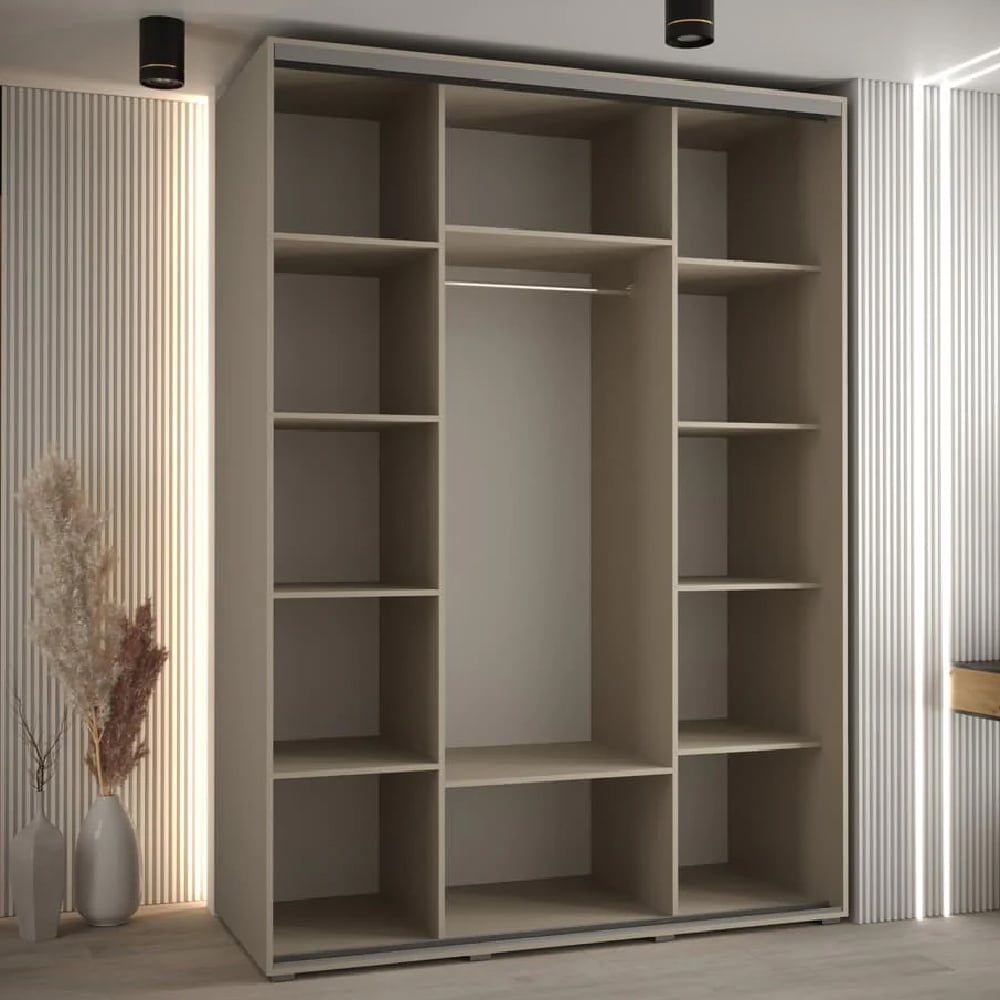 The CHOICEWARDROBE Delta 3 Door Mirrored Sliding Wardrobe in Cashmere delivers a refined, modern aesthetic paired with exceptional storage efficiency. The warm beige-toned cashmere finish, contrasted with optional black detailing, creates a stylish centrepiece for contemporary UK bedrooms. The central full-length mirror enhances brightness and space, making this wardrobe ideal for both compact and larger rooms.