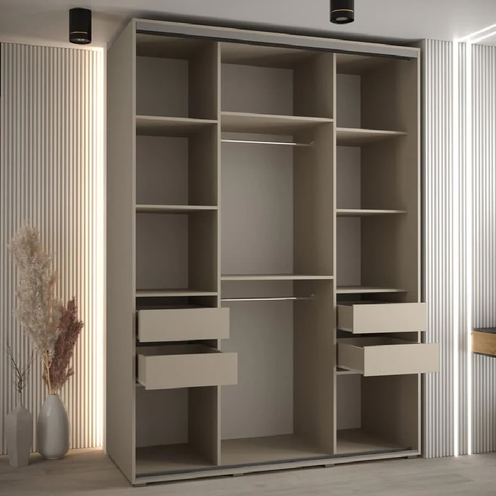 With smooth-glide sliding doors, adjustable shelf sections and dual hanging areas, the Delta wardrobe offers an organised, clutter-free storage experience built for everyday use.