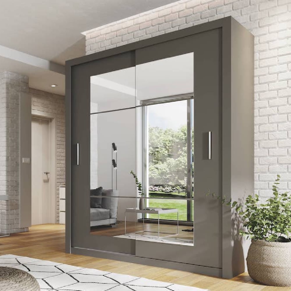 Ionia Wooden Wardrobe 180cm With 2 Sliding Doors In Matt Grey