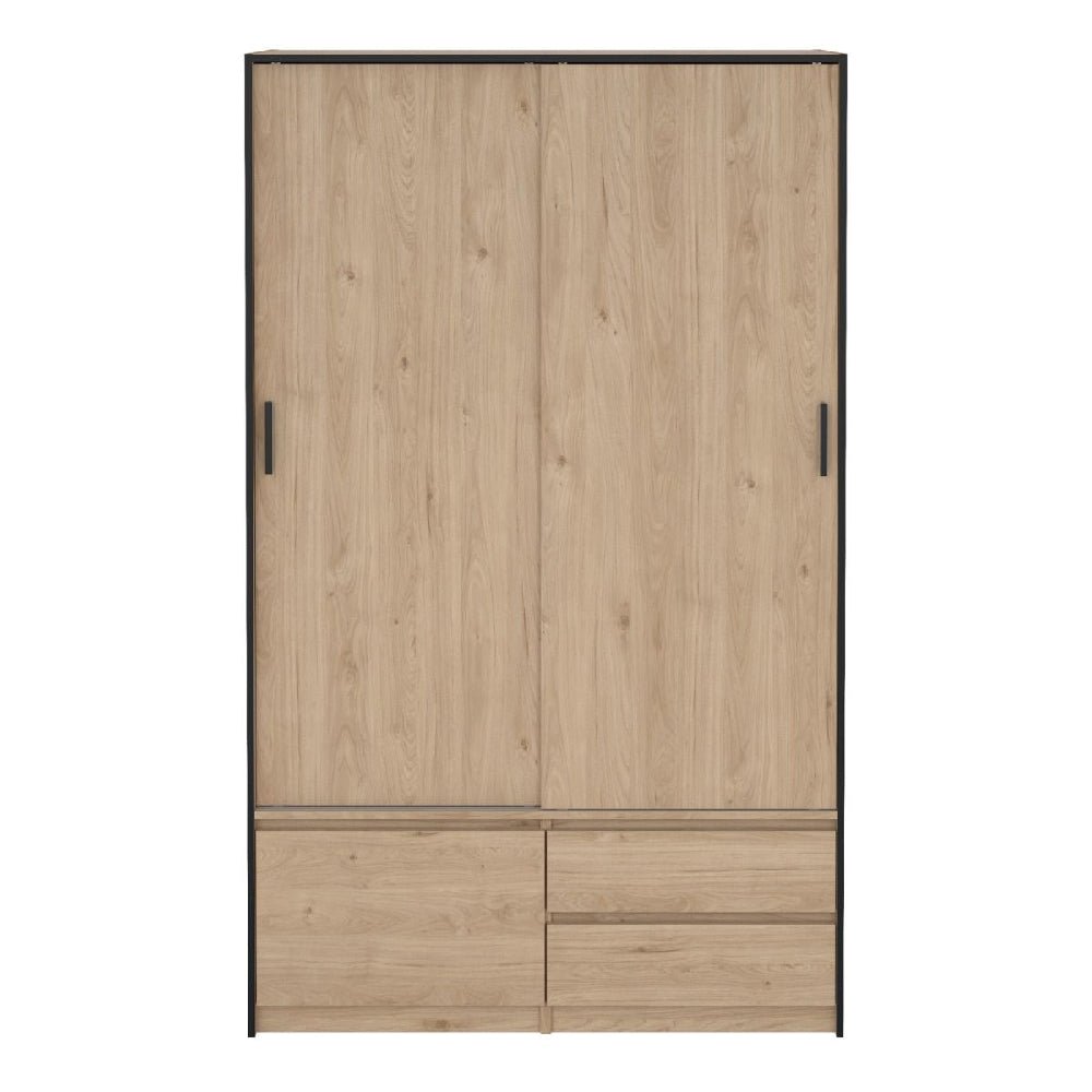 Bring a touch of industrial elegance to your bedroom with the CHOICEWARDROBE Lebanon Oak Sliding Door Wardrobe. Designed for both style and functionality, this stunning 2-door wardrobe with 2 drawers combines a rich Jackson Hickory Oak finish with minimalist black detailing for a truly modern aesthetic that complements contemporary interiors.