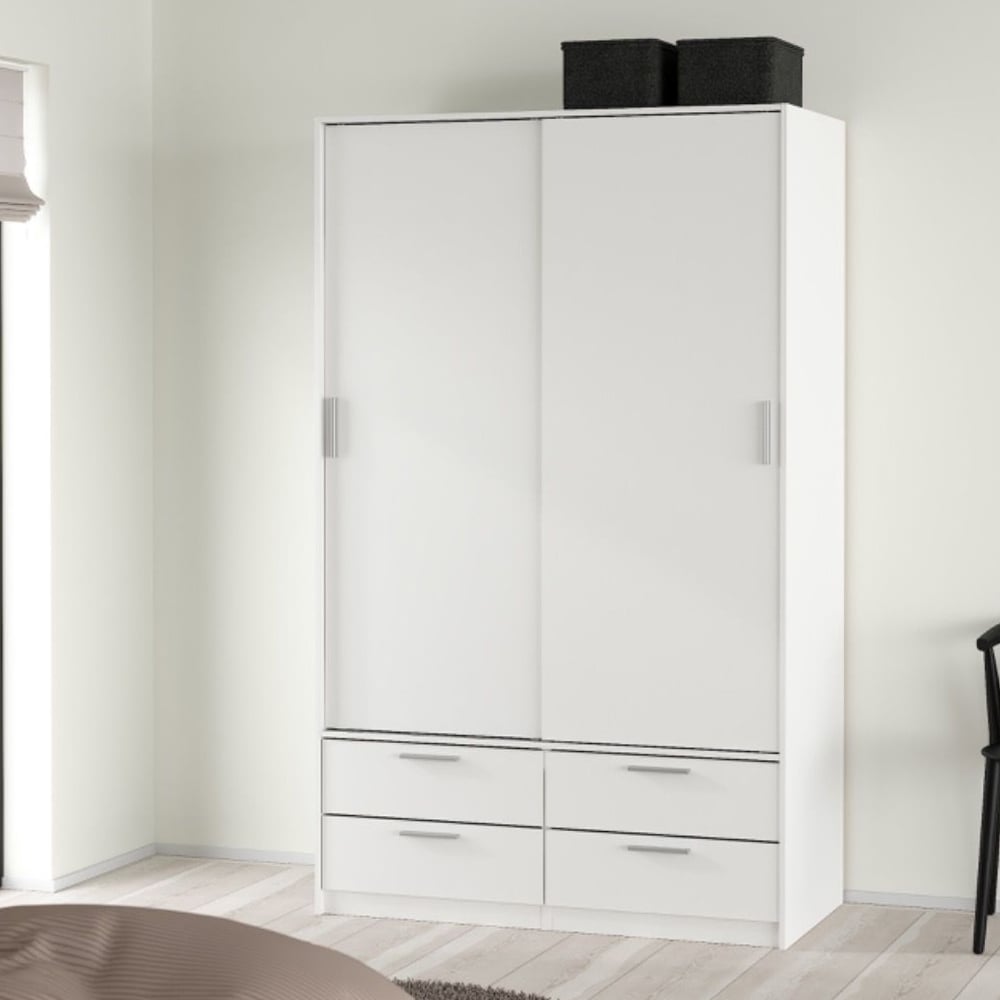 CHOICEWARDROBE Lebanon White Sliding Door Wardrobe | 2 Door Wardrobe with 4 Drawers – Modern Minimalist Bedroom Storage