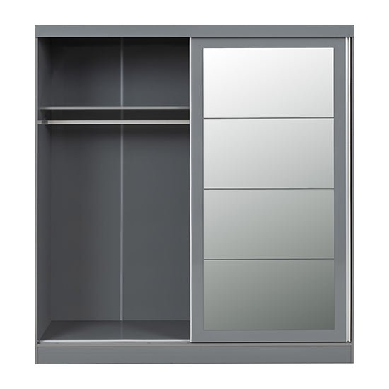 Transform your bedroom with the CHOICEWARDROBE Modara Grey Sliding Wardrobe – 2 Door with Mirror, expertly crafted for modern UK interiors. Featuring a smooth grey high-gloss finish paired with full-length mirrored panels, it delivers the perfect balance of elegance, practicality and light-enhancing design.