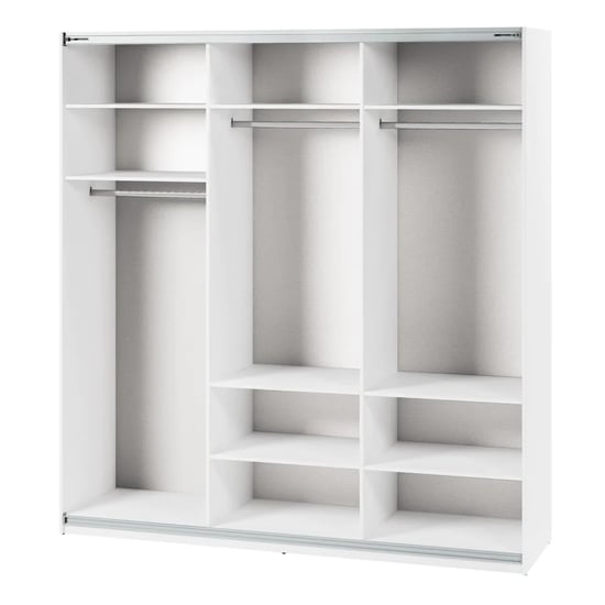 The three smooth-glide sliding doors eliminate the need for swing clearance, making this wardrobe ideal for larger bedrooms, fitted-style layouts, or spaces where efficiency matters. The high-gloss white finish reflects light naturally, helping the room feel brighter, wider, and more composed.