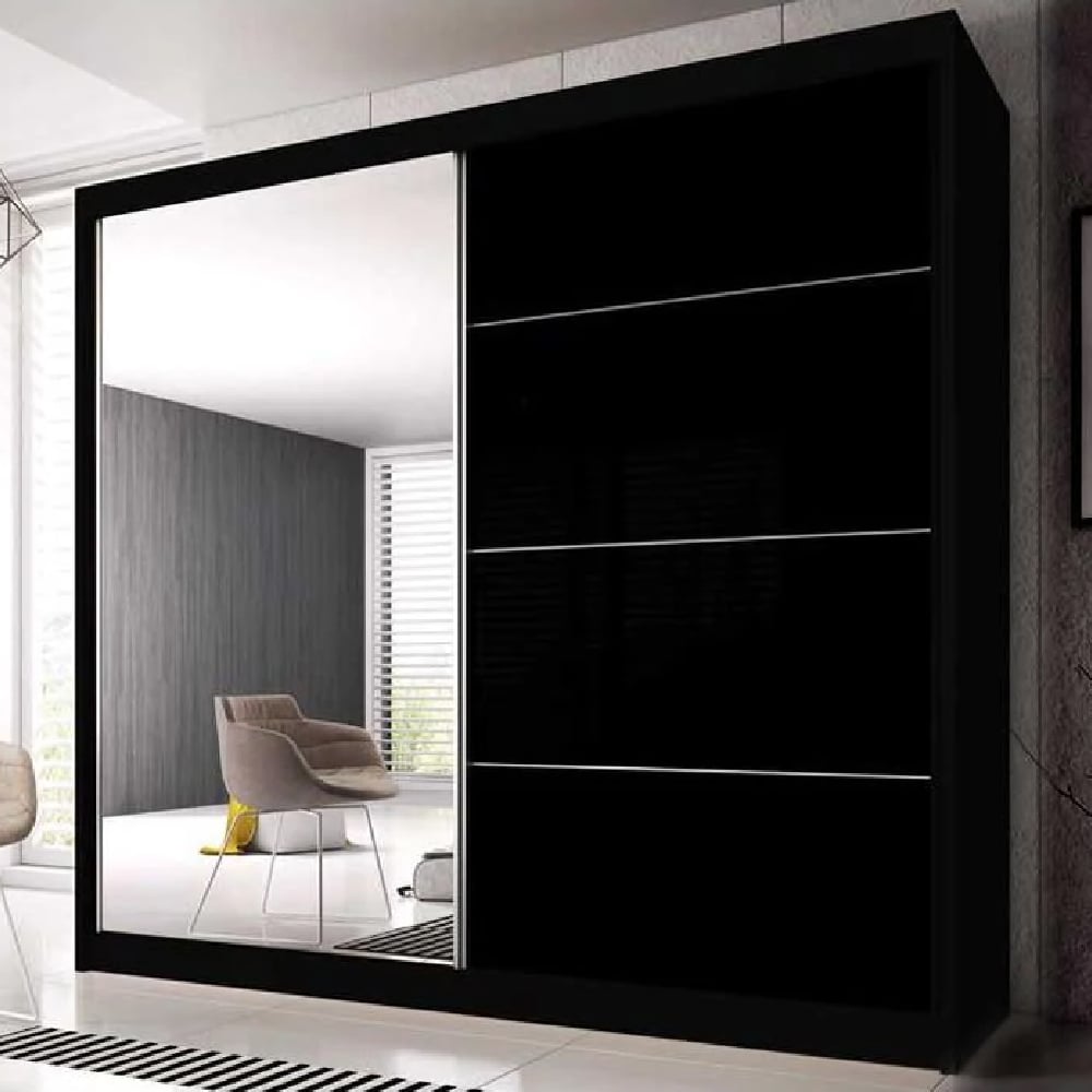 Transform your bedroom into a statement of modern sophistication with the CHOICEWARDROBE Mesa 2 Door Mirrored Sliding Wardrobe in a sleek Black Gloss finish. Measuring 183 cm wide, this contemporary wardrobe combines elegance, practicality, and premium craftsmanship—perfect for homes seeking both luxury and function.