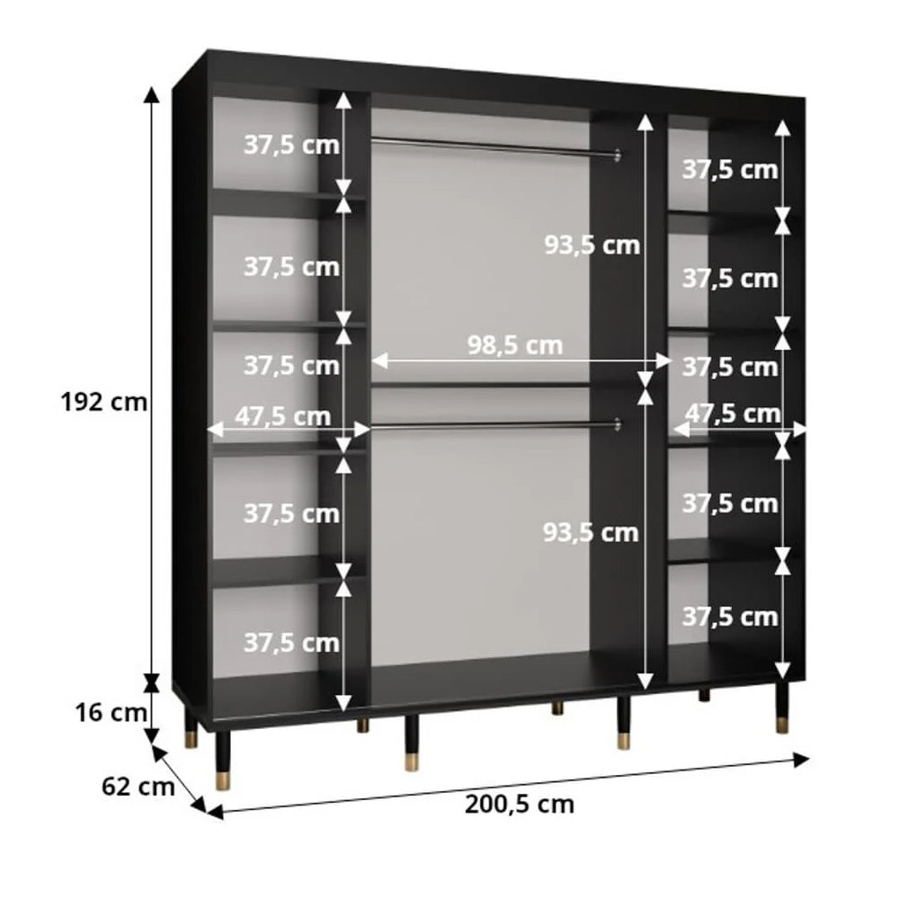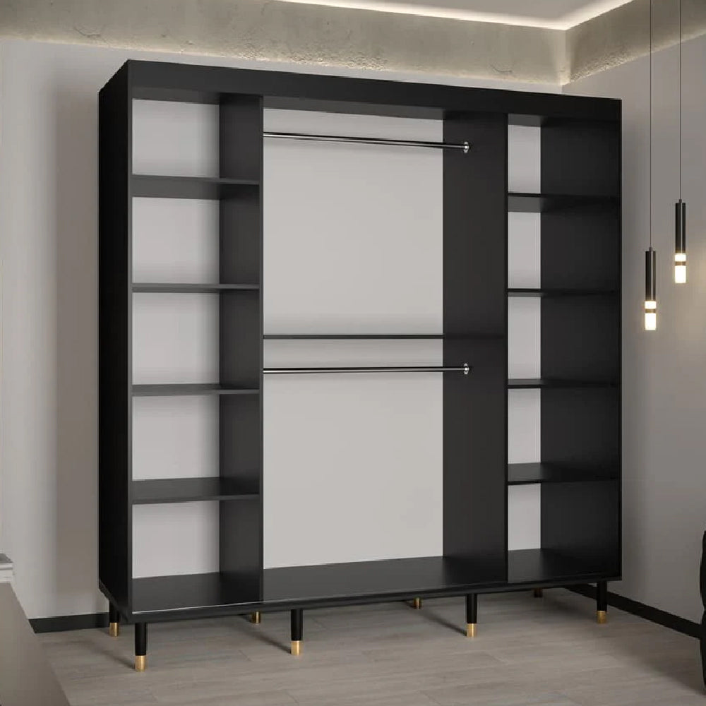 Millwall 200cm Wooden Wardrobe With 2 Sliding Doors In Black