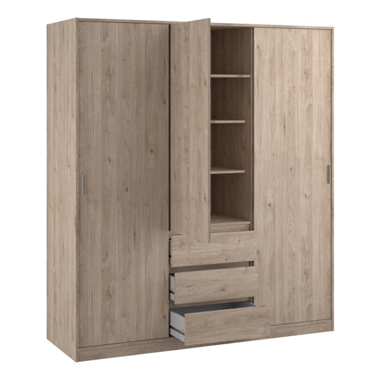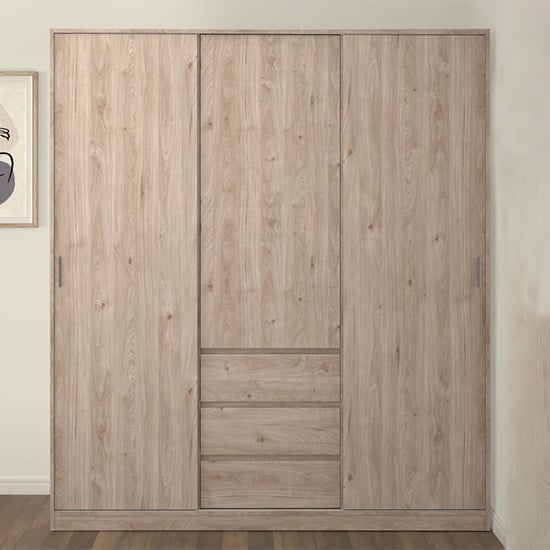 Nakou Sliding Wardrobe 3 Doors 3 Drawers In Jackson Hickory Oak
