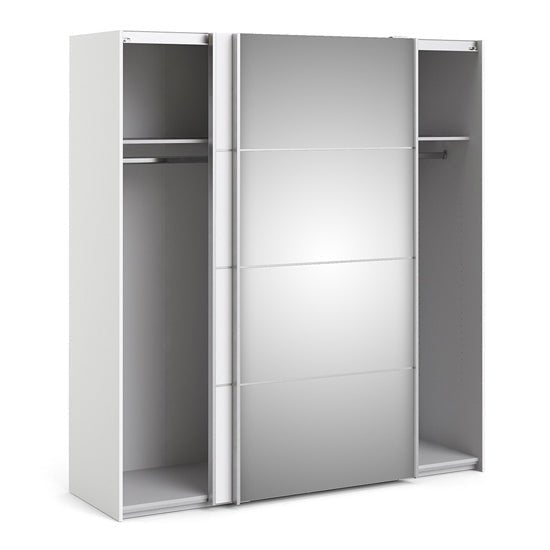 - White finish with full-length mirrored sliding doors