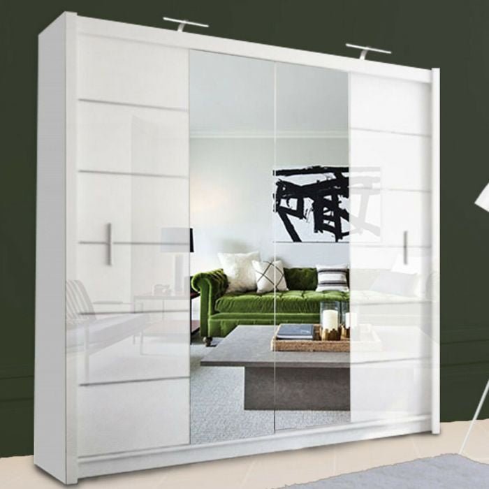 CHOICEWARDROBE LISBANE 2 Door Sliding Wardrobe With Full Length Mirror Doors White 203cm
