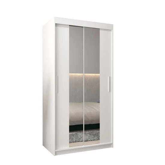 Upgrade your bedroom with the CHOICEWARDROBE Tavira 100cm White Mirrored Sliding Door Wardrobe — a contemporary space-saving solution designed for modern homes. Finished in crisp white with a sleek mirrored front, this compact wardrobe maximises both storage and style, adding light and depth to any room.