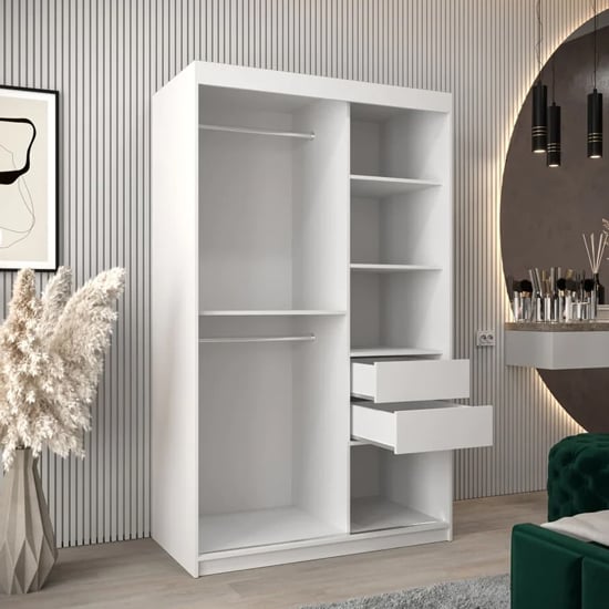 Enhance your bedroom with the CHOICEWARDROBE Tavira 120cm White Mirrored Sliding Door Wardrobe — a compact yet striking design that blends elegant aesthetics with smart storage. Finished in clean white with a full-length mirrored front, this modern wardrobe adds light, depth, and sophistication to any room.