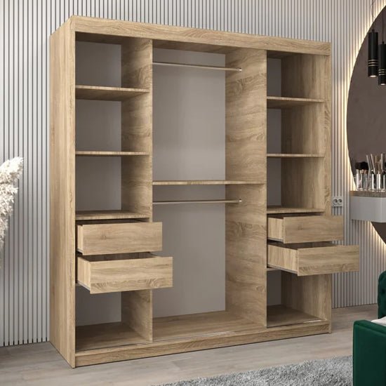 The Sonoma Oak finish introduces natural grain character and softness, allowing the wardrobe to integrate comfortably into modern and transitional interiors without overwhelming the space.