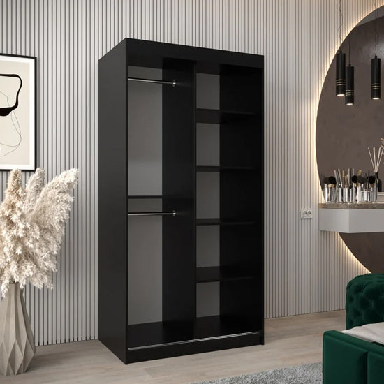 Tavira Wooden Wardrobe 2 Sliding Doors 100cm In Black