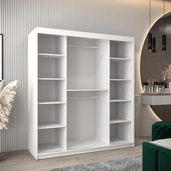 The CHOICEWARDROBE Tavira 180cm Sliding Door Wardrobe – White offers a clean, space-efficient storage solution designed for modern bedrooms. Finished in crisp white, this wardrobe brings visual clarity and balance while maximising internal storage without compromising floor space.