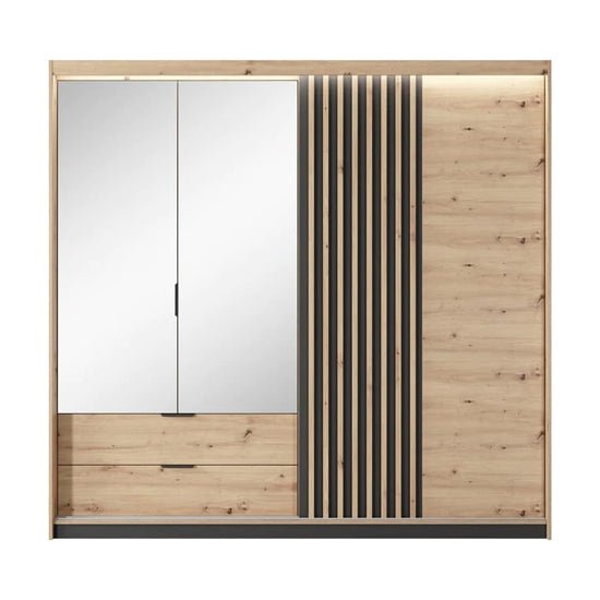 The Artisan Oak finish and mirrored design complement both contemporary and Scandinavian bedroom themes beautifully.