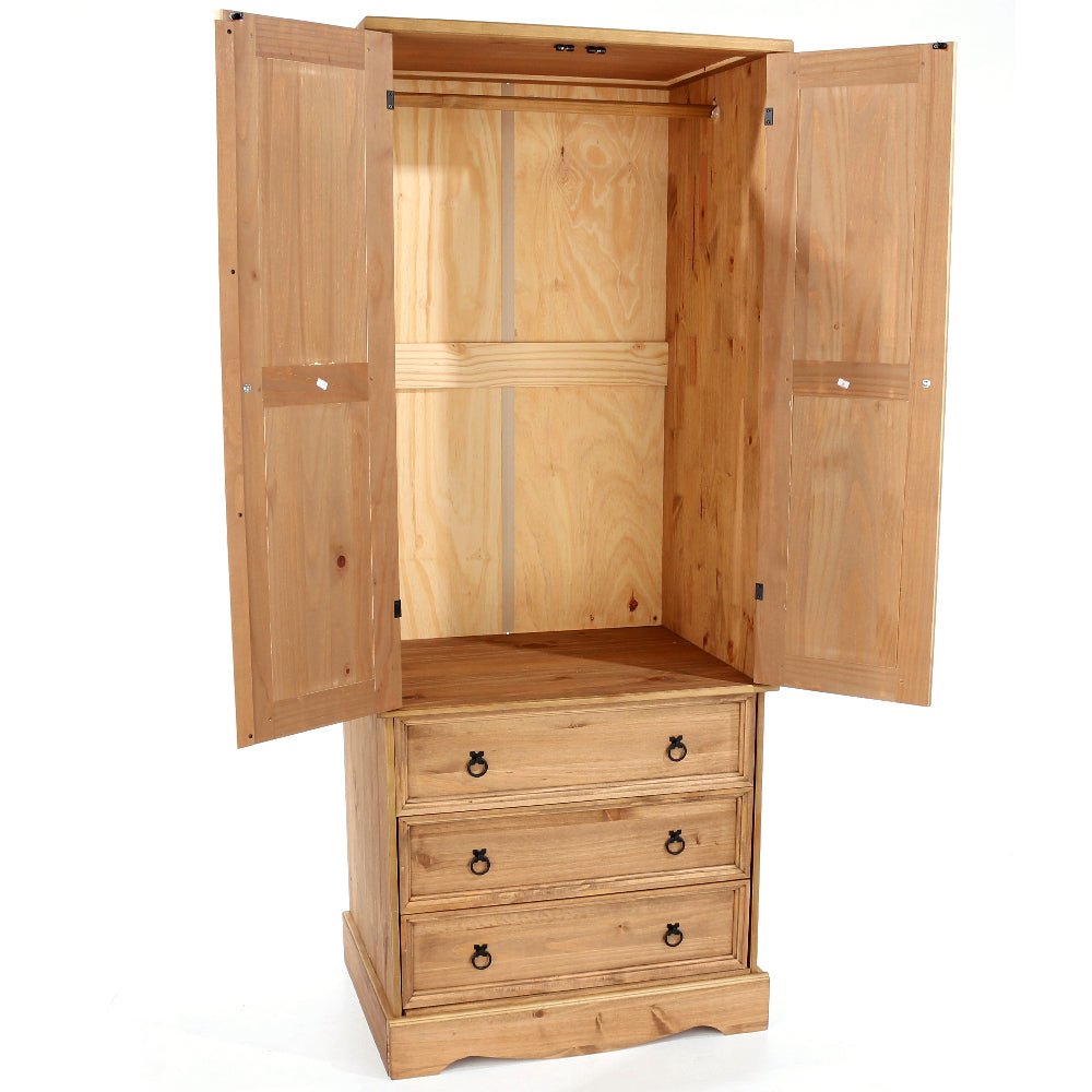 CHOICEWARDROBE Consett 2 Door 3 Drawer Solid Pine Wardrobe