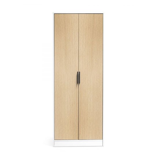The Akron Wooden Wardrobe with 2 Doors in White and Oak is a contemporary storage solution for modern UK bedrooms. Finished in a two-tone White and Oak, it combines a clean silhouette with practical space for everyday use. With two doors, it presents a compact footprint that fits neatly into a range of bedroom schemes while keeping clothing and accessories neatly out of sight.