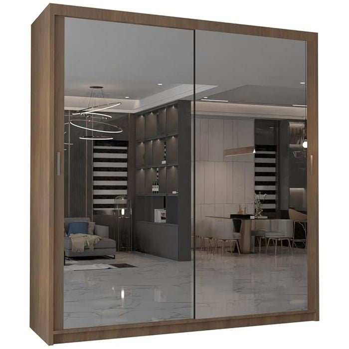 CHOICEWARDROBE CHICAGO II Sliding Door Wardrobe 2 Door Walnut Finish Mirrored Doors 203cm