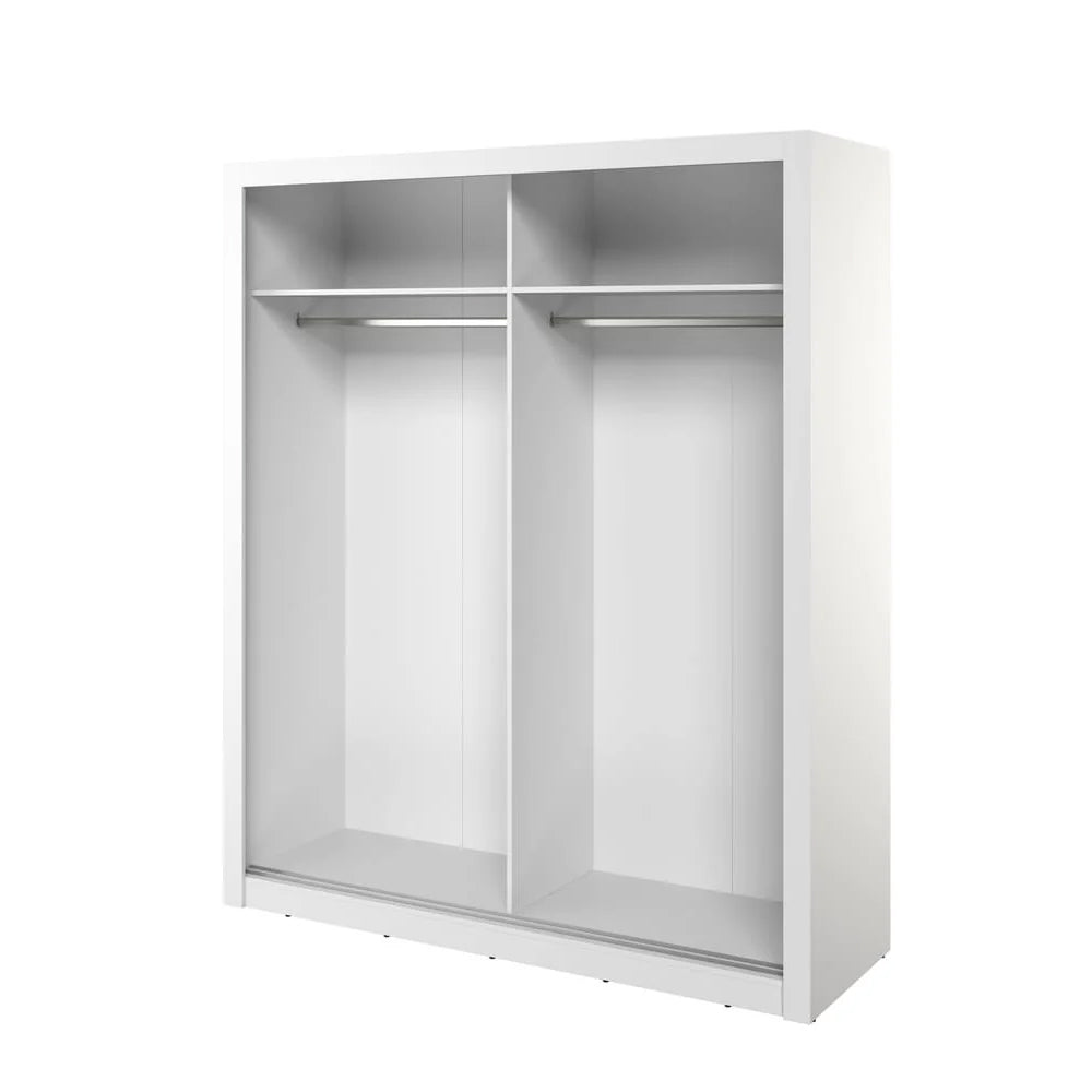 Expertly designed for style and practicality, the Allen wardrobe features two sliding doors that glide effortlessly to reveal a generous storage interior. With three removable shelves and two hanging rails, you can tailor your layout to suit folded garments, coats, or accessories. The full-length mirror enhances brightness and adds depth — ideal for both compact and spacious bedrooms alike.