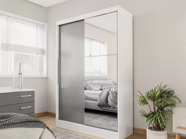 Constructed from MDP (multiple density particleboard), this high-quality wardrobe features a sliding mirrored door plus an internal top shelf for additional bedroom storage