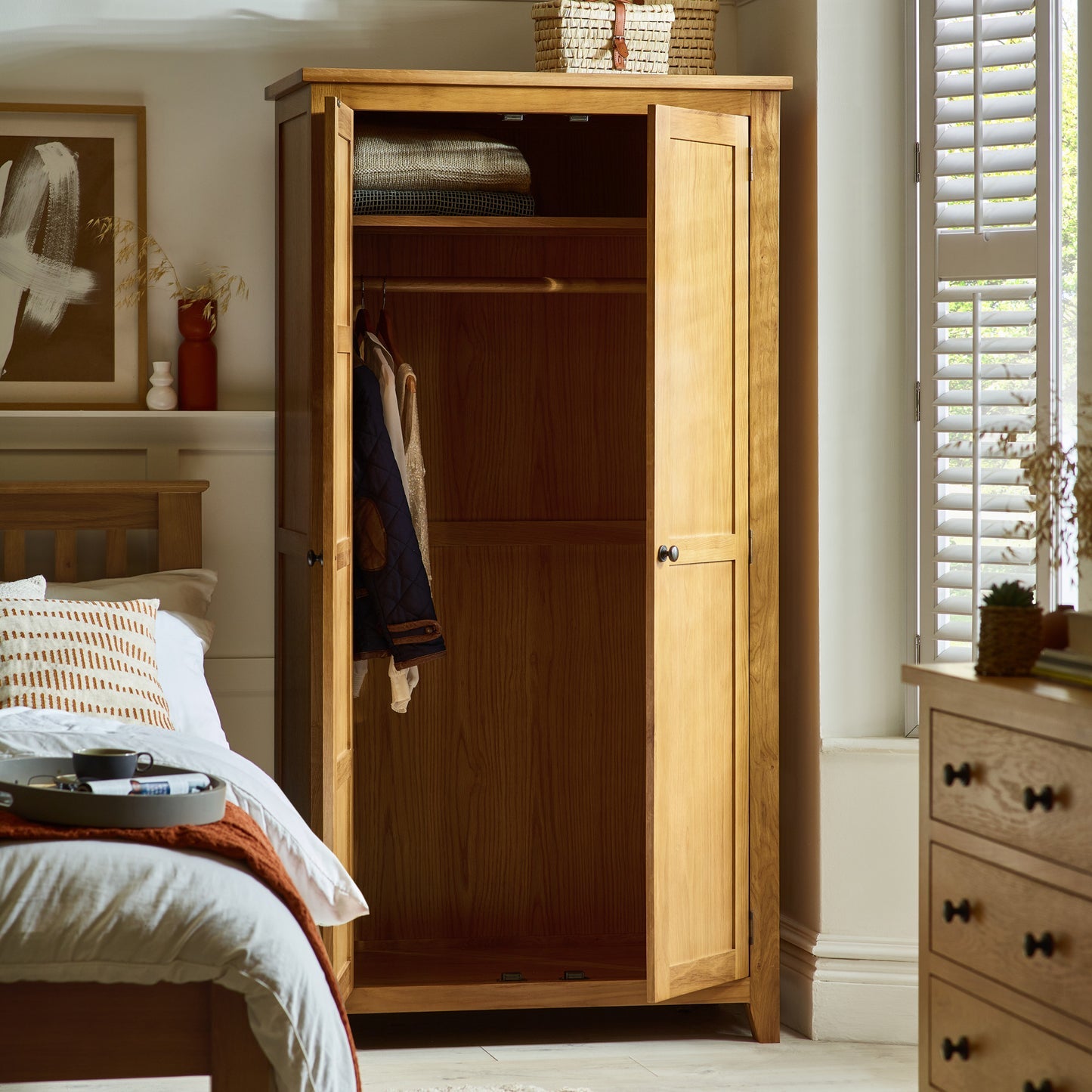 CHOICEWARDROBE Mabli 97 cm 2 Door Waxed Oak Wardrobe – Solid Wooden Frame | Classic Shaker Design with Hanging Rail