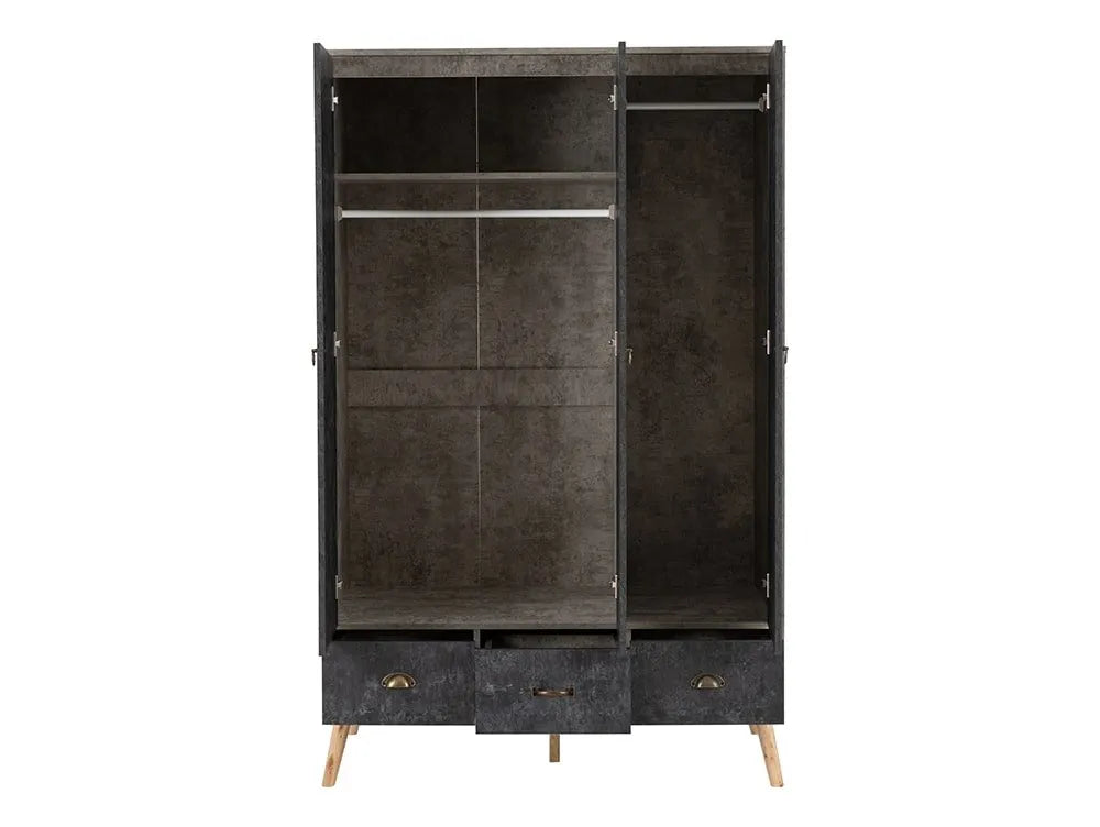 Wooden Wardrobe In Concrete Effect And Charcoal