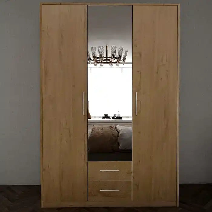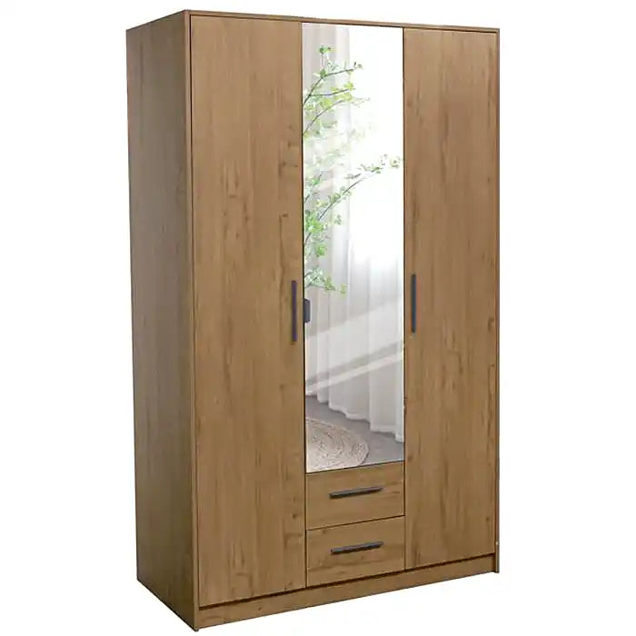 CHOICEWARDROBE 120 cm Planked Oak 2 Door Mirrored Wardrobe with Drawers | Contemporary Bedroom Storage with Hanging Rail & Shelves