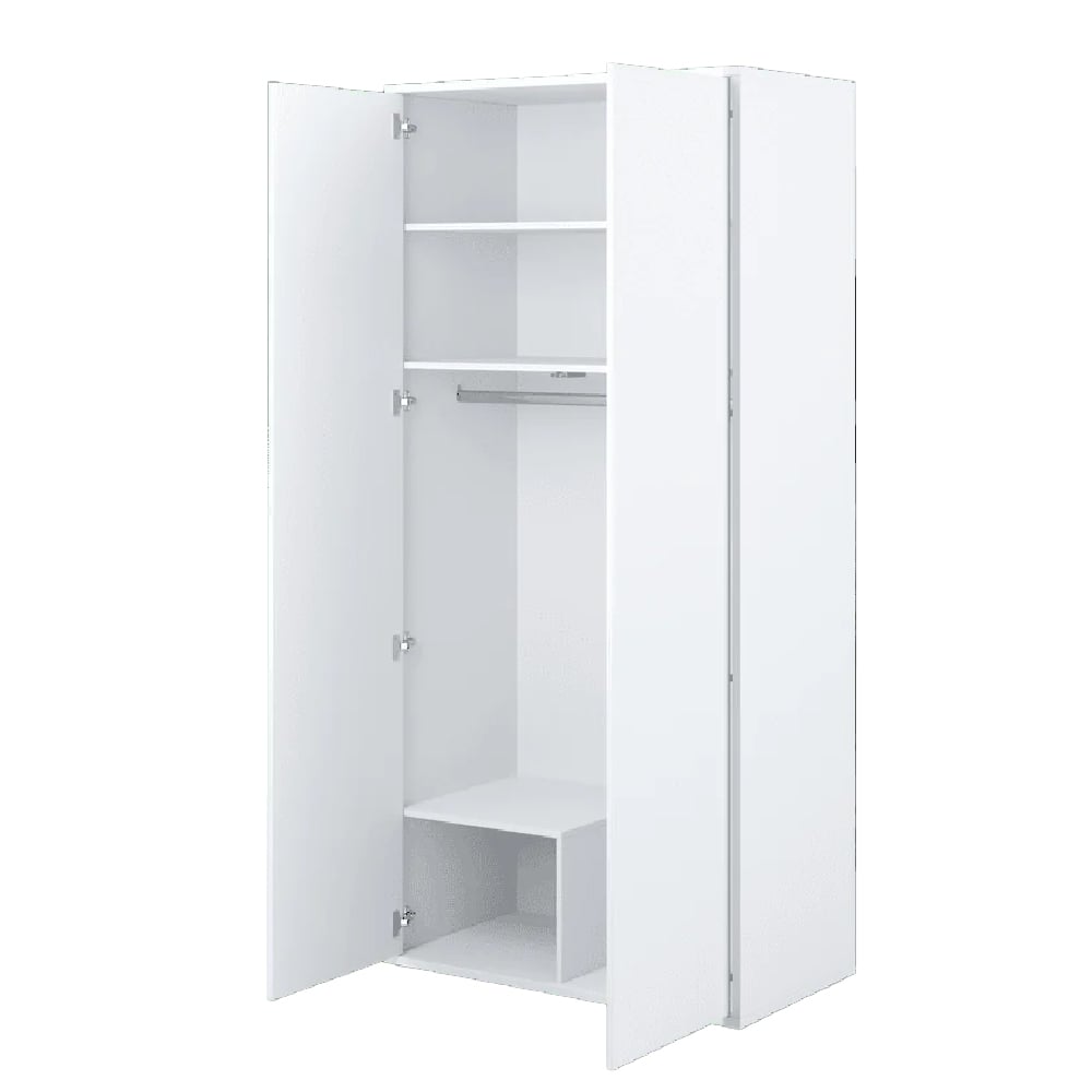 The Clarion wardrobe is designed for compact bedrooms where clear circulation space and practical storage matter. Finished in a calm white matt, it keeps the room visually light while providing defined, accessible storage within a controlled footprint.