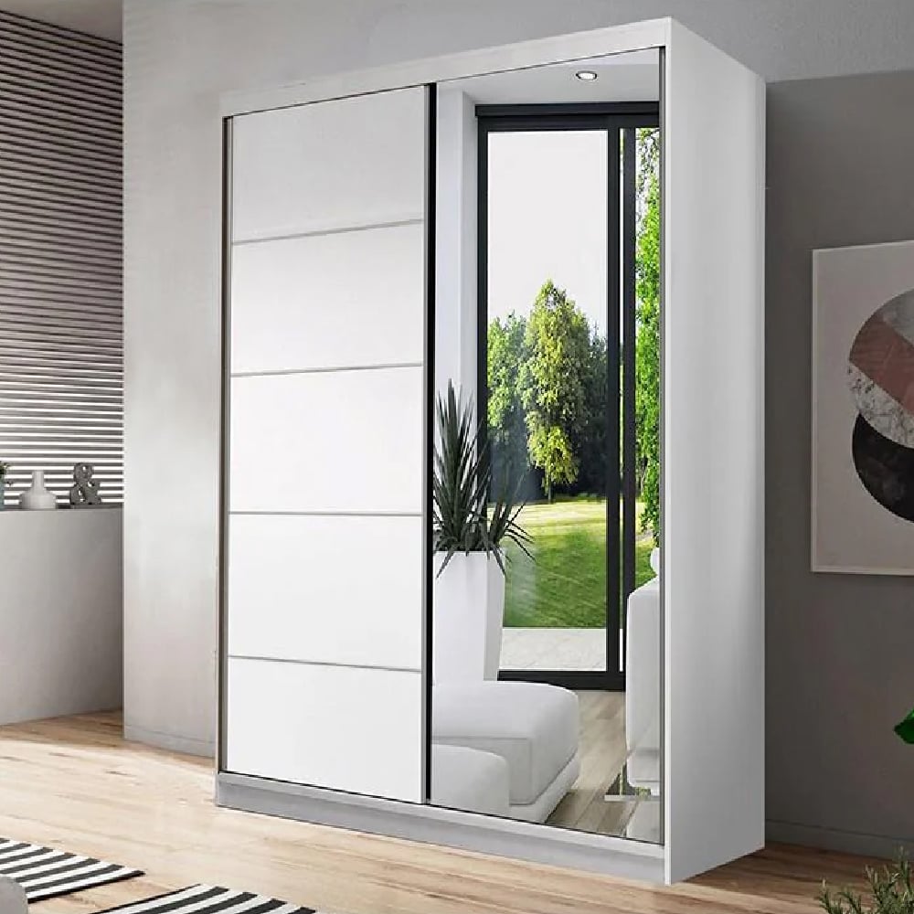 Its handle-free matte white design creates a clean, contemporary aesthetic — perfect for those who appreciate simplicity and elegance. One mirrored panel adds brightness and visual depth, turning your wardrobe into both a storage solution and a design feature.