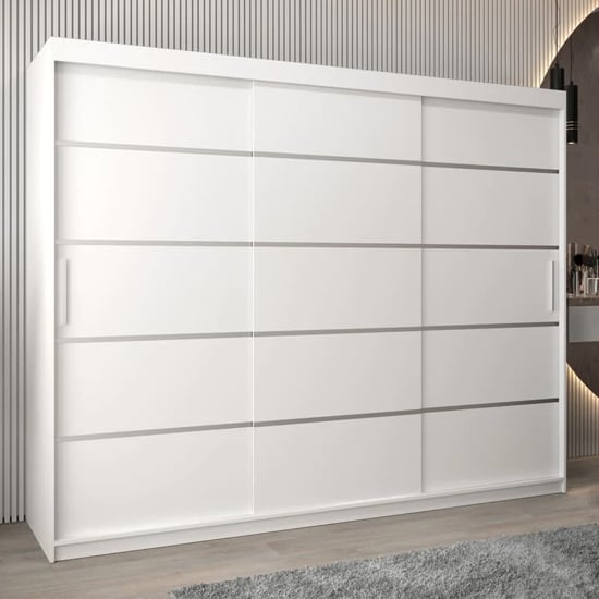 The CHOICEWARDROBE Vevey 250 cm Matt White Sliding Wardrobe delivers a perfect balance of expansive storage, modern design and practical functionality. Its wide interior, smart layout and clean finish make it an exceptional upgrade for contemporary UK bedrooms.