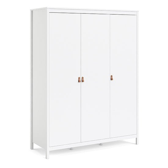 Barcila features clean lines, a smooth laminated surface, and subtle leather handles that introduce warmth and texture without disrupting the minimalist aesthetic. The durable white finish is resistant to scratches, moisture, and everyday wear, making it well suited to family homes.