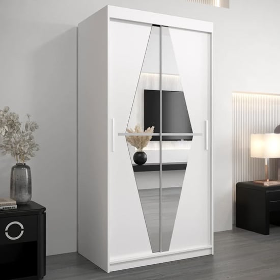 Redefine modern storage with the CHOICEWARDROBE Beloit 2 Door Sliding Mirrored Wardrobe — a perfect balance of minimalist design, geometric elegance, and everyday practicality. Finished in a smooth matte white tone, this wardrobe brightens any interior while keeping your essentials organised behind space-saving sliding doors.