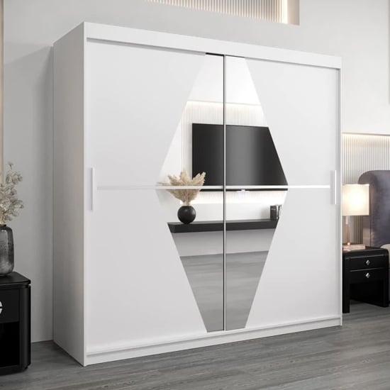 Why is the 200cm Beloit wardrobe finished in white with full-length mirrors?