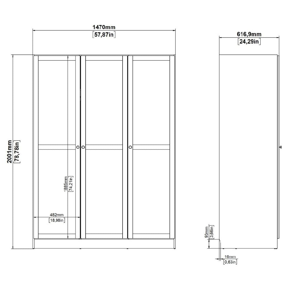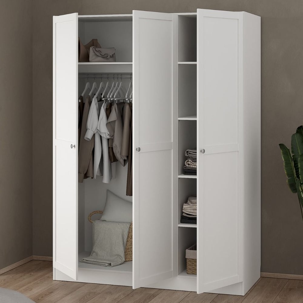 CHOICEWARDROBE Burbank 3 Door Wooden Wardrobe – White Finish | Minimalist Modern Design