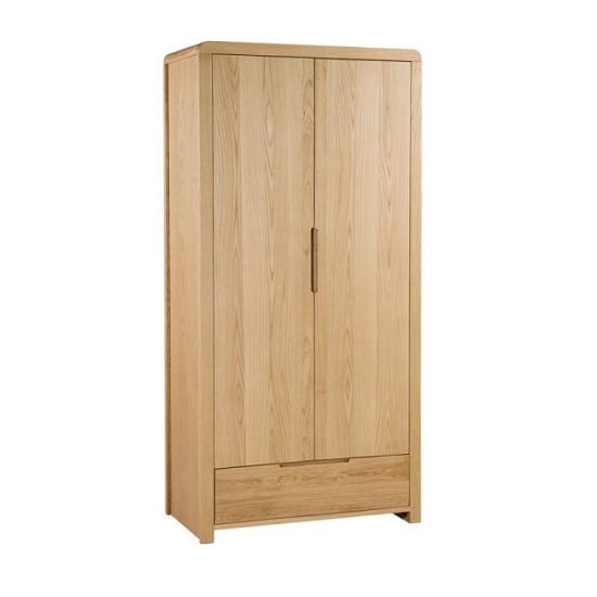 Crafted from solid white oak and oak veneers, the Camber combines clean lines with a gentle curved edging, adding a stunning touch to any bedroom. Recessed handles enable easy opening and a modern feel. This Camber wardrobe has an ample hanging space featuring 2 doors and 1 drawer, perfect for extra storage.
