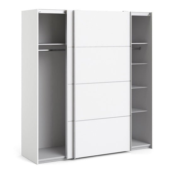 Enhance your bedroom with the CHOICEWARDROBE Dcap 182 cm White Sliding Door Wardrobe — a refined storage solution that combines Scandinavian simplicity with exceptional functionality. Finished in a clean white matte tone accented by subtle oak details, this wardrobe brings light, balance, and timeless appeal to any interior space.