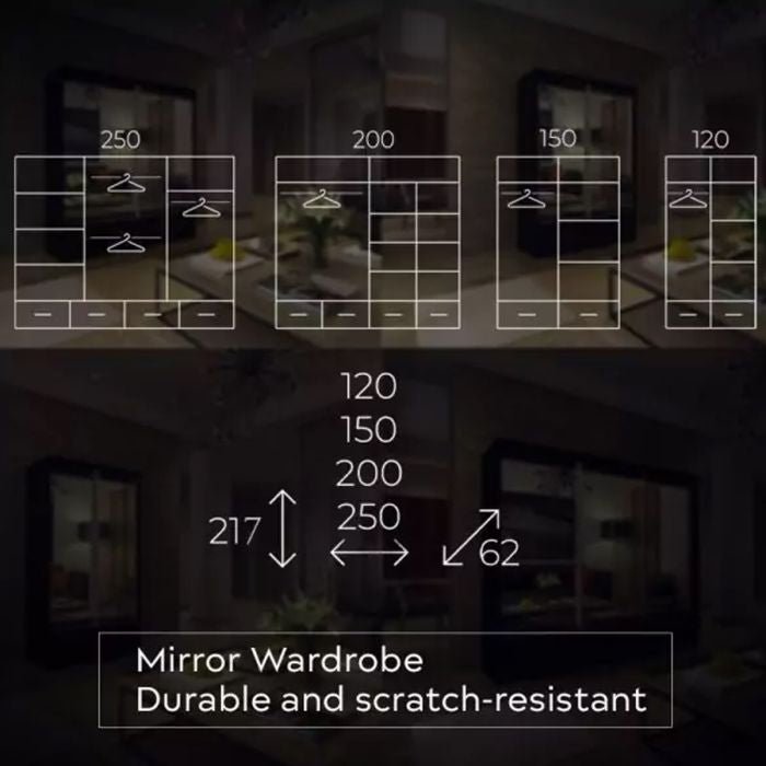 The CHOICEWARDROBE NEWRY Mirrored Sliding Door Wardrobe delivers a clean, modern aesthetic while providing generous and practical storage for everyday living. Designed with a combination of hanging space and shelving, it offers room for coats, suits, tops, t-shirts, towels, shoes, bedding, and storage boxes.