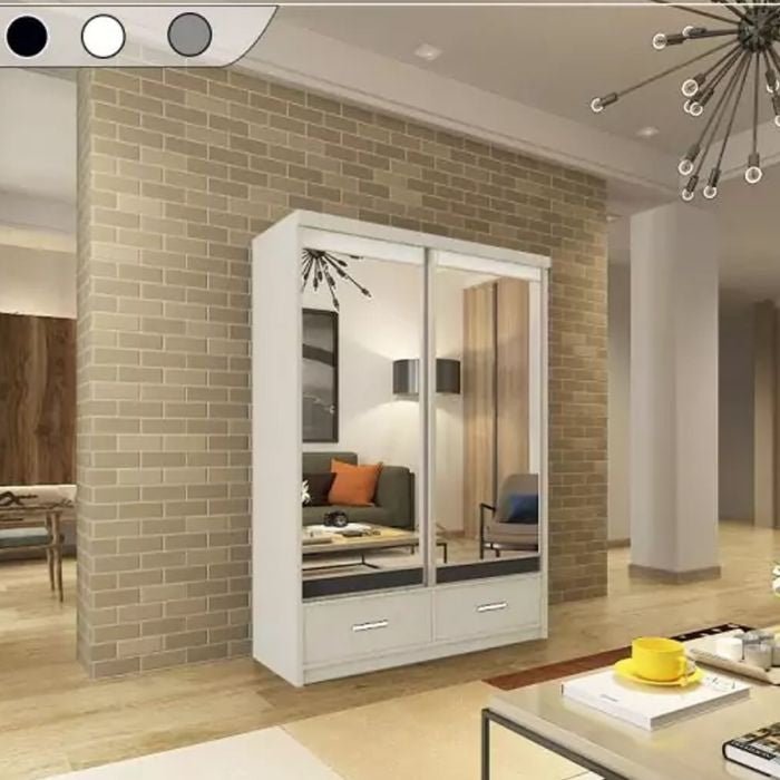 CHOICEWARDROBE Newry 150cm Sliding Door Wardrobe – White Finish, 2 Door, Mirrored Doors and Pull Out Drawers