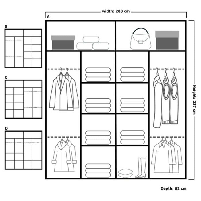 Please ensure your room has at least 20 cm of excess space around the full dimensions of the wardrobe, and 3–5 cm of space from either side once positioned. Depending on your room layout, more space may be required to manoeuvre the wardrobe safely. If you are unsure, please contact us before ordering.
