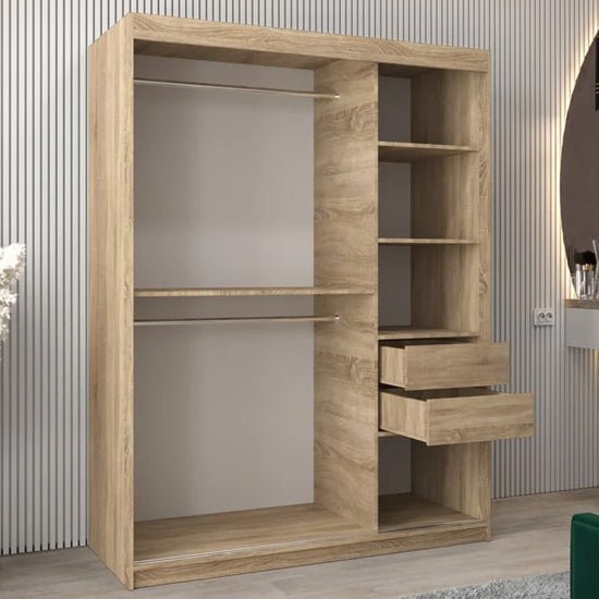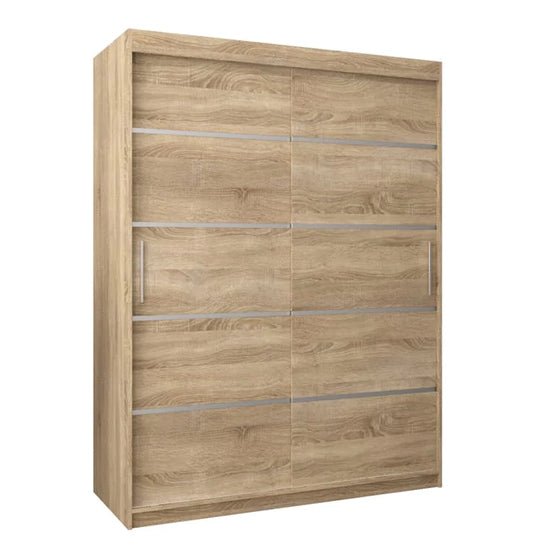 The CHOICEWARDROBE Vevey I Wooden Sliding Wardrobe – 150cm in Sonoma Oak is designed for bedrooms that require increased storage capacity without compromising spatial efficiency. The Sonoma Oak finish introduces natural warmth and texture while maintaining a modern, composed appearance.