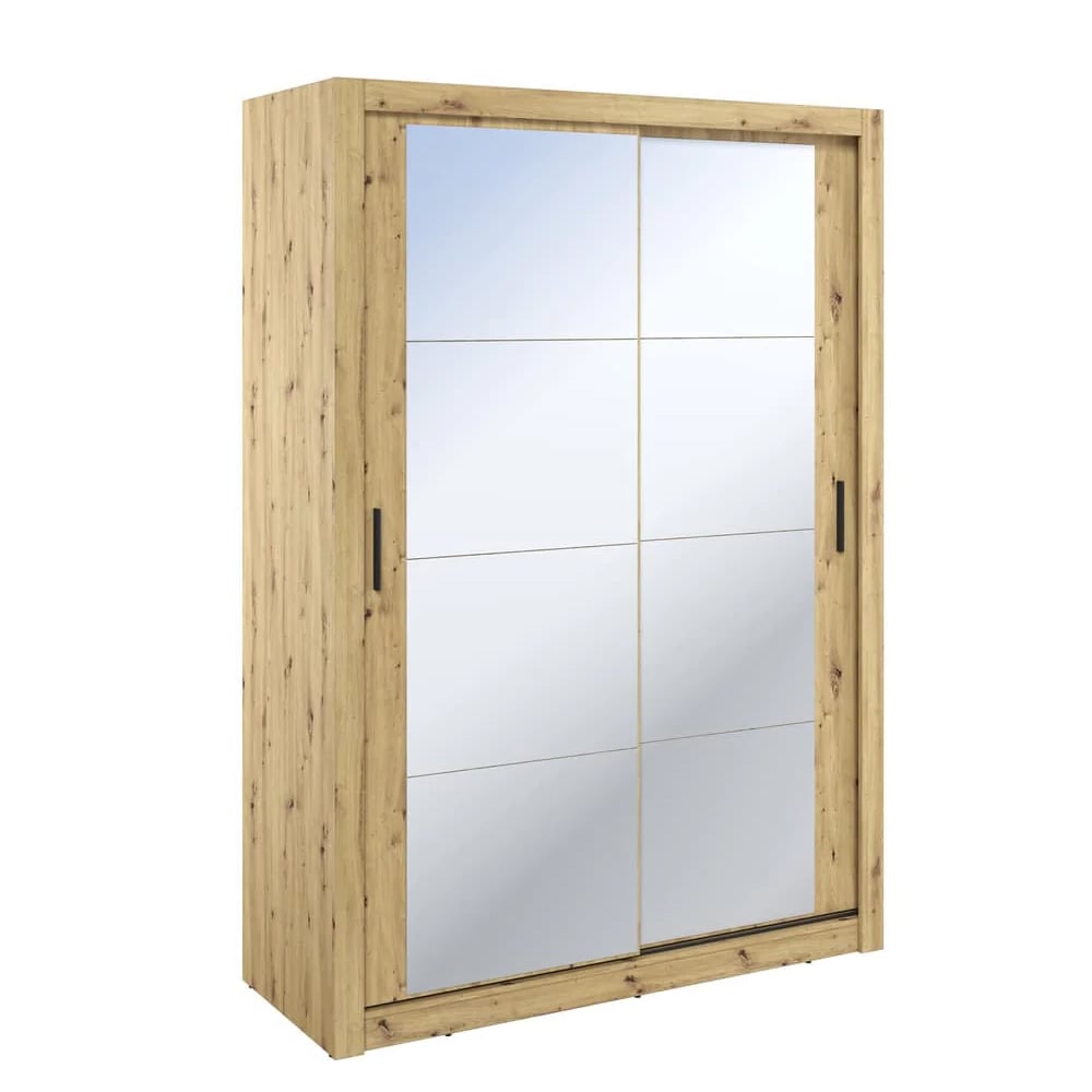 CHOICEWARDROBE Allen 120cm Natural Oak Sliding Wardrobe with Full Mirror Doors – Modern Space-Saving Bedroom Storage