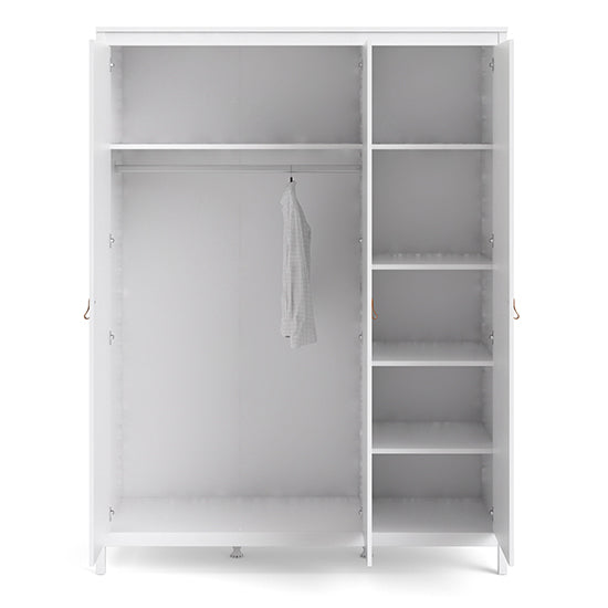 CHOICEWARDROBE Barcila 3 Door Wooden Wardrobe – White Finish | Modern Minimalist Design with Leather Handles & Ample Storage