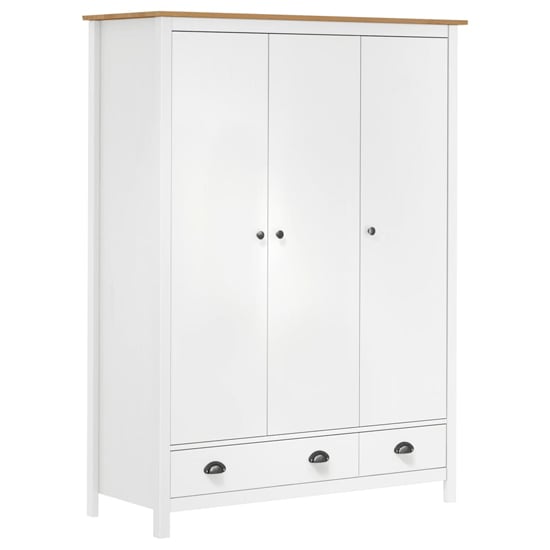 CHOICEWARDROBE Kendal 3 Door Wooden Wardrobe – 127cm White & Oak Finish | Classic Storage Wardrobe with Drawers, Shelves & Hanging Rail