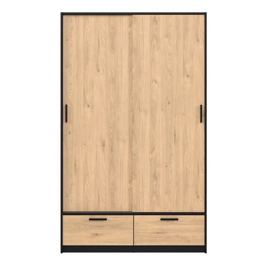 CHOICEWARDROBE Liston 2 Door Sliding Wardrobe – Black & Oak Finish with 2 Drawers