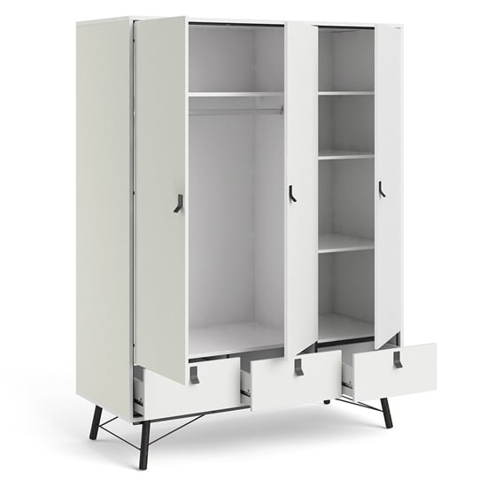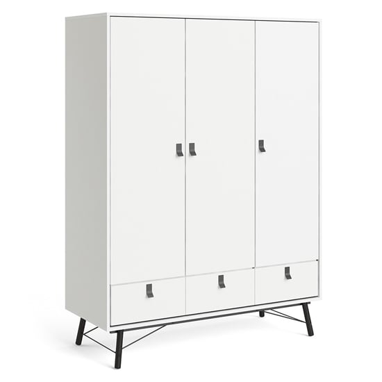 CHOICEWARDROBE Rynok 150cm 3 Door Wooden Wardrobe – Matt White Finish | Modern Metal Legs, Drawers & Hanging Storage